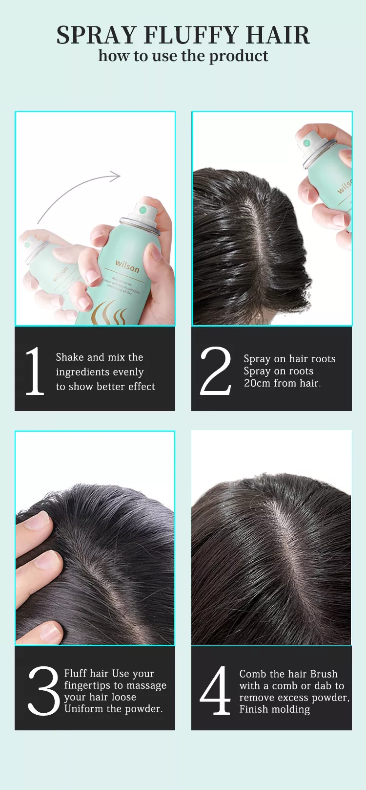 Wilson Instant No-Wash Cool Dry Shampoo Proway သည်ဆံပင်ပြ problem နာကိုမျှမလျှော်နိုင်ပါကအဓိကကုန်ကြမ်းများမှာအသေးအဖွဲပစ္စည်းပစ္စယများနှင့်ဆံပင်ကိုသန့်ရှင်းရေးလုပ်ပြီးဆံပင်ကိုသန့်ရှင်းရေးလုပ်ပြီး Surme Prolscops နှင့် Surfactant နှင့် extractant နှင့် electaction အစိတ်အပိုင်းများကိုထိထိရောက်ရောက် ဆံပင်။ အသုံးပြုပြီးနောက်လတ်ဆတ်ပြီးသဘာဝကိုခံစားရသည်။