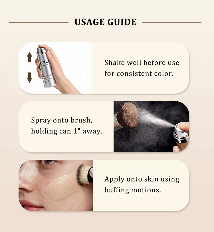 ကျွန်ုပ်တို့၏ Wilson Long-lasting breathable hydrating foundation spray သည် ဖော်မြူလာပုံစံဒီဇိုင်း၊ အရိပ်လိုက်ဖက်မှု၊ ထုပ်ပိုးမှုပုံစံများနှင့် အမှတ်တံဆိပ်တံဆိပ်ကပ်ခြင်းအပါအဝင် ကဏ္ဍပေါင်းစုံတွင် စိတ်ကြိုက်ပြုလုပ်ပေးပါသည်။ ဖောက်သည်များသည် လွှမ်းခြုံမှုအဆင့်၊ အဆီထိန်းချုပ်မှုထိရောက်မှု၊ စိုစွတ်သောပါဝင်ပစ္စည်းများနှင့် ပစ်မှတ်စျေးကွက်များနှင့် စားသုံးသူလိုအပ်ချက်များနှင့်အညီ လုပ်ဆောင်နိုင်သော လက္ခဏာရပ်များကို အံဝင်ခွင်ကျဖြစ်စေနိုင်သည်။ တစ်ချိန်တည်းတွင်၊ မတူကွဲပြားသော အသားရောင်များကို လိုက်လျောညီထွေဖြစ်စေရန်အတွက် အမှတ်တံဆိပ်အလှအပများနှင့် လိုက်လျောညီထွေရှိသော အရိပ်အကွာအဝေးကို ရွေးချယ်နိုင်သည်။ ထုပ်ပိုးမှုနှင့်ပတ်သက်၍၊ ရေမှုန်ရေမွှား၏ စွမ်းရည်၊ ပစ္စည်း၊ နော်ဇယ်အမျိုးအစားနှင့် အလှအပဆိုင်ရာ ဒီဇိုင်းအားလုံးကို စိတ်ကြိုက်ပြင်ဆင်နိုင်ပြီး လက်တွေ့ကျမှုနှင့် အမြင်အာရုံနှစ်ရပ်စလုံးကို အာမခံပါသည်။ ထို့အပြင်၊ ကျွန်ုပ်တို့၏စက်ရုံသည် စိတ်ကြိုက်အမှတ်တံဆိပ်များ၊ ထုပ်ပိုးမှုပုံနှိပ်ခြင်းနှင့် ညွှန်ကြားချက်လက်ကမ်းစာစောင်ပါ၀င်သည့် အကြောင်းအရာများဖြင့် စိတ်ကြိုက်တံဆိပ်ကပ်ခြင်းကို ပံ့ပိုးပေးသည်၊၊ ပုဂ္ဂိုလ်ရေးသီးသန့်အမှတ်တံဆိပ်မြှင့်တင်ရေးနှင့် ကွဲပြားသောစျေးကွက်နေရာချထားမှုကို ပံ့ပိုးပေးပါသည်။