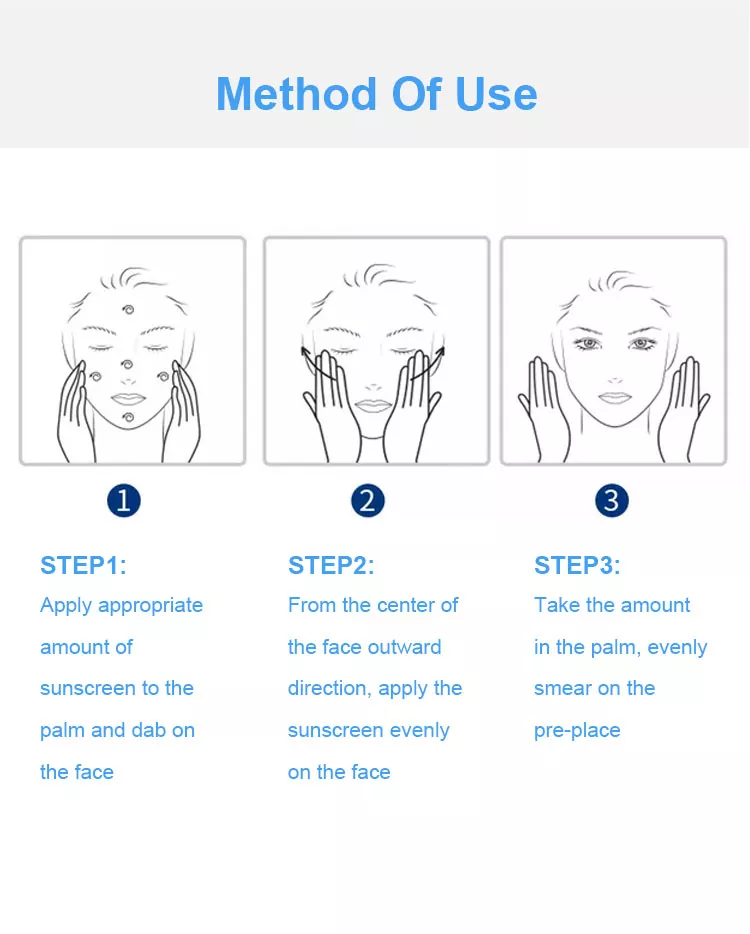 Sunscreen ကိုအသုံးပြုသောအခါမျက်လုံးနှင့်ပါးစပ်မျောမျောခြင်းကိုရှောင်ရှားရန်ဂရုစိုက်သင့်သည်။ ထို့အပြင်အရေပြားအပေါ်ဝန်ထုပ်ဝန်ပိုးကိုလျှော့ချရန်ညအချိန်တွင်မိတ်ကပ်ကိုဖယ်ရှားသင့်သည်။