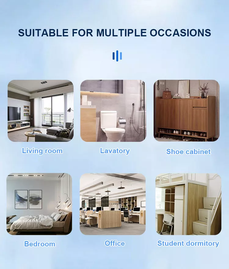 အထူးသဖြင့်မိုးလုံလေလုံလေထုအရည်အသွေးတိုးတက်စေရန်အထူးဒီဇိုင်းပြုလုပ်ထားသောထုတ်ကုန်တစ်ခုဖြစ်သည်။ ၎င်းသည်ပိုမိုသန့်ရှင်းမြင့်မြတ်ပြီးလတ်ဆတ်သောလေကိုရှူရှိုက်မိစေရန်အိမ်တွင်းအနံ့, formatordehyde, pm2.5 နှင့်အခြားအန္တရာယ်ရှိသောပစ္စည်းများတိုးတက်လာနိုင်သည်။ Air Fresheners သည်အောက်ပါအခြေအနေများအတွက်သင့်တော်သည်။