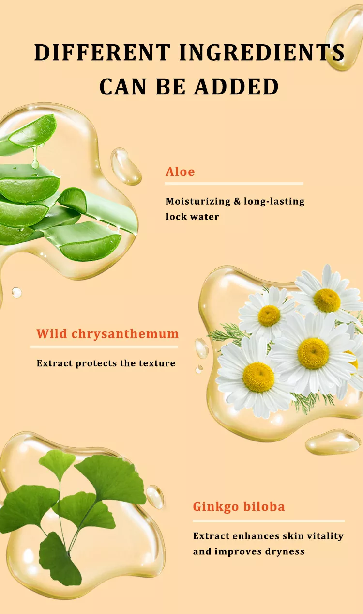 ကုန်ပစ္စည်း၏ထူးခြားသောပါဝင်ပစ္စည်းများ (ဥပမာ Hyitamide, Niacinamide, အထူးသဖြင့်အီး, သီးခြားအပင်ထုတ်ယူခြင်းစသည်),